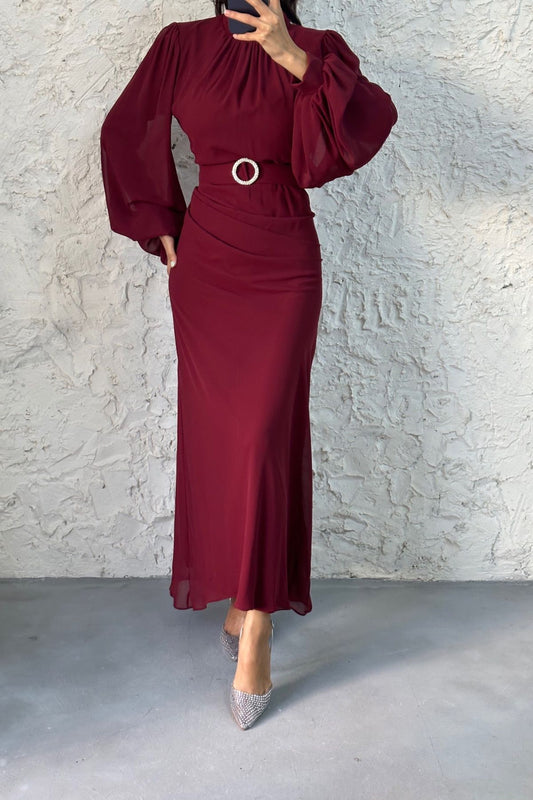 Amara Grace Pleated Chiffon Maxi Dress 4759