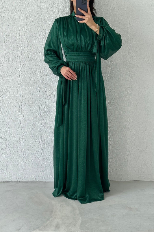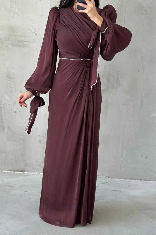 Beautiful Detailed Waist Tied Crepe Dress 3021